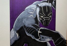 9x12 original art of Black Panther created with ink and copic markers.