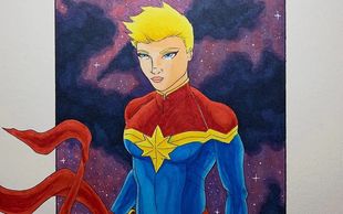 9x12 original art of Captain Marvel created with ink and copic markers.