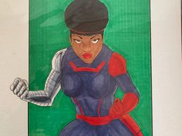 9x12 original art of Misty Knight created with ink and copic markers.