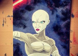 11 x 17 original art of Asajj Ventress from Star Wars The Clone Wars. Created on a Canson Comic Book Art Board with ink and copic markers.