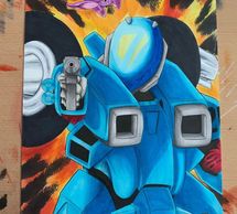 11 x17 original art of Scott Bernard from Robotech New Generation in his Cyclone Battle Armor. Created on a Eon Comic Art Board with ink and copic markers.